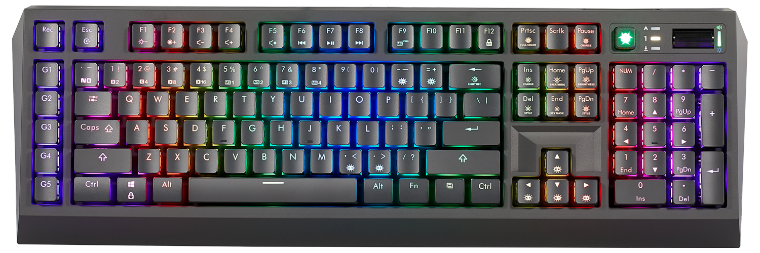 The DeathStrike GK760 full-size mechanical gaming keyboard with G-keys and True RGB backlight features a Master Key - a dedicated key to enable and disable the DeathStrike GK760 gaming keyboard’s RGB backlight.