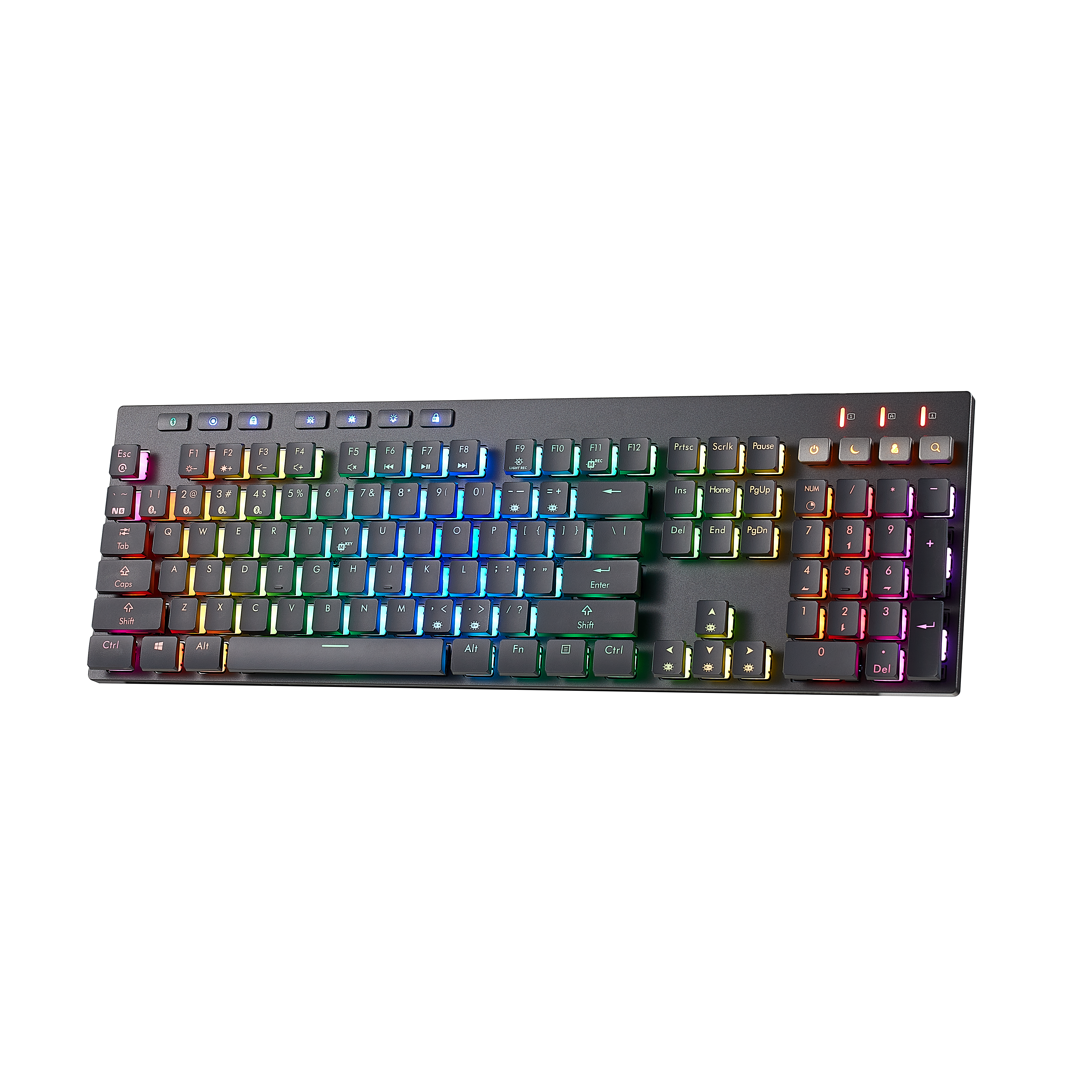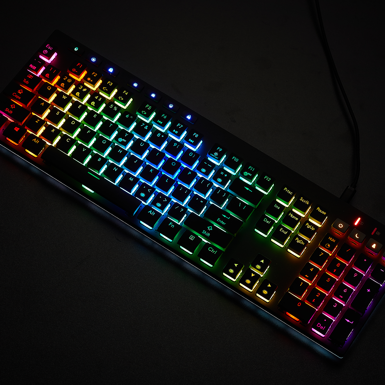 Modern floating-key aesthetic + fully programmable keys/16.8M RGB for ultimate customization.