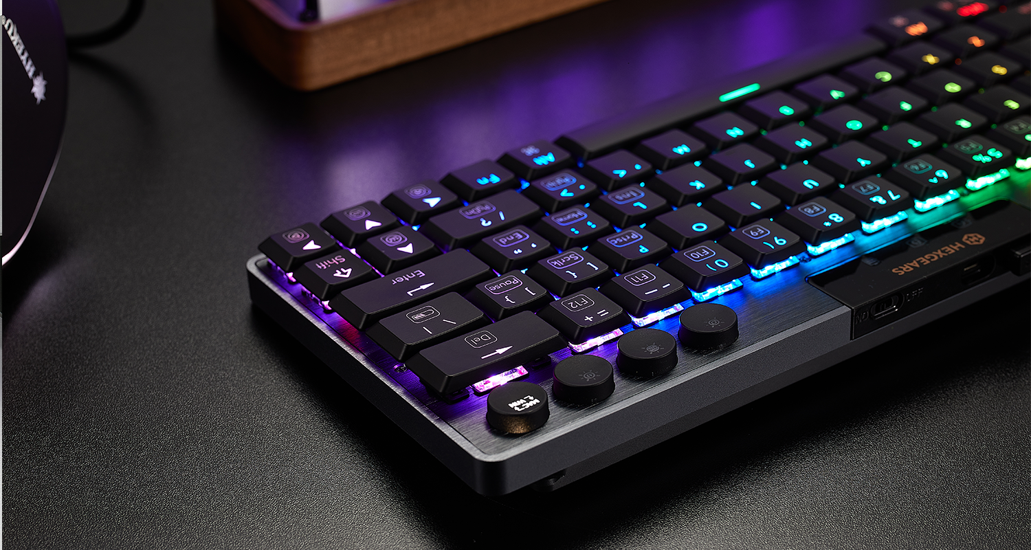 Immersive A1 RGB backlighting system illuminates your workspace and gaming world with a dazzling spectrum. Use FN key combinations and HexDrive™ software to freely configure, create, and customize your own epic, vibrant effects.