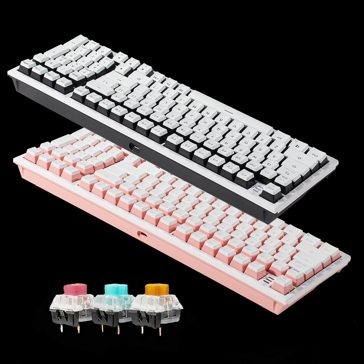 The 98% size design saves space compared to a 100% size keyboard while retaining all functions without sacrificing functionality or performance. The combination of a sturdy sealing ring design, double-shot molded keycaps, and hot-swappable mechanical switches brings you a high-end gaming experience without the high-end price tag.